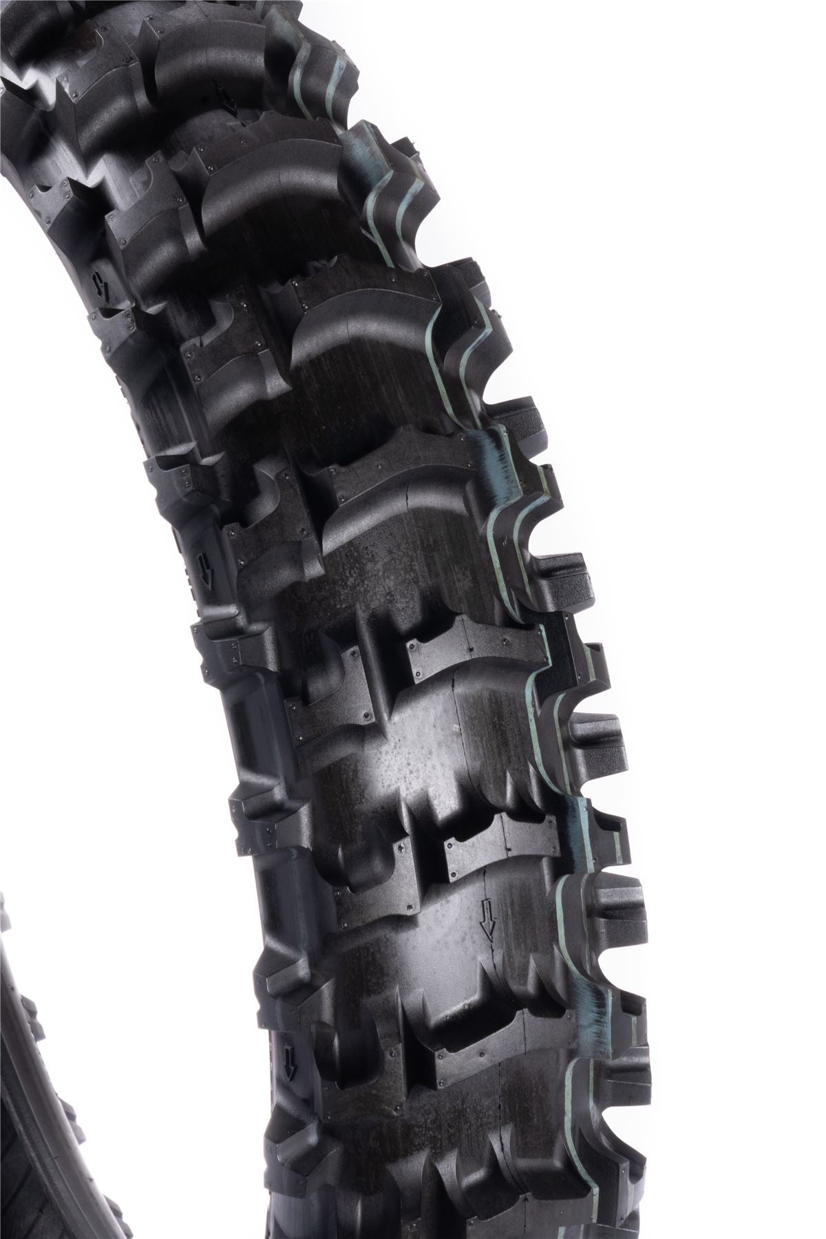 • Reinforced tread blocks on A, B and C blocks provide compliant drive and cornering in the loosest conditions