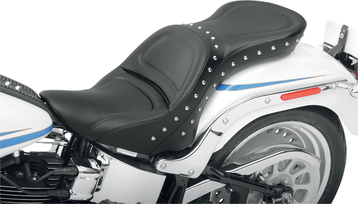 • Designed and contoured for two-up touring comfort; match all studded saddlebags and luggage