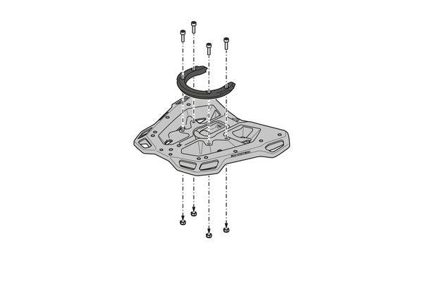 • The adapter plate latch buckle is equipped with a safety mechanism that secure TRAX top cases, Sysbag 15/30 with adapter plate and PRO or EVO tank bags in place